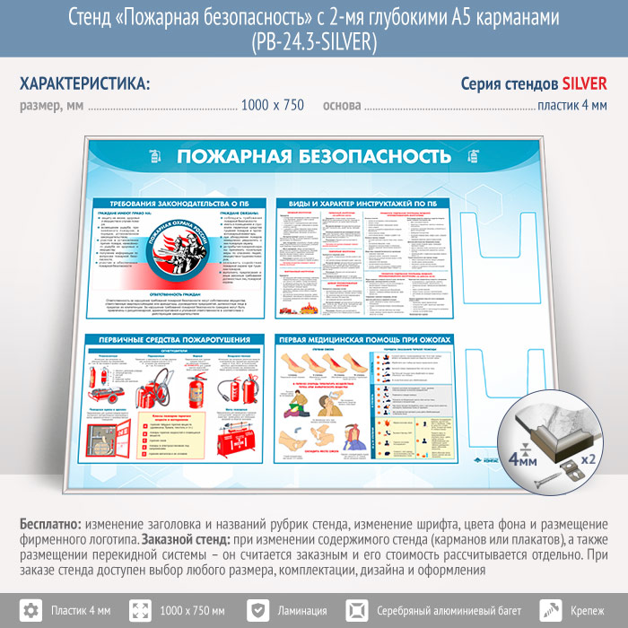 Стенд «Пожарная безопасность» с 2-мя глубокими А5 карманами (PB-24.3-SILVER) в Улан-Удэ купить
