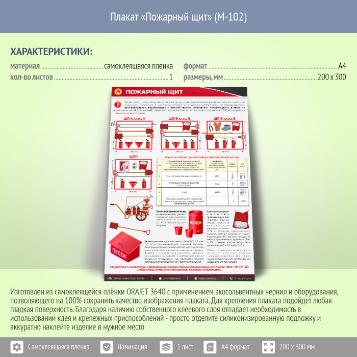 Плакат «Пожарный щит» (М-102, самоклеящаяся пленка, А4, 1 лист) в Улан-Удэ купить