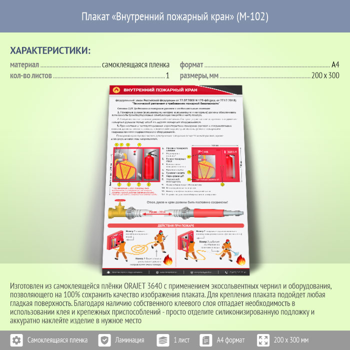 Плакат «Внутренний пожарный кран» (М-103, самоклеящаяся пленка, А4, 1 лист) в Улан-Удэ купить