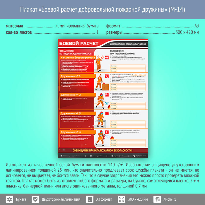 Плакат «Боевой расчет добровольной пожарной дружины» (М-14, ламинированная бумага, А3, 1 лист) в Улан-Удэ купить