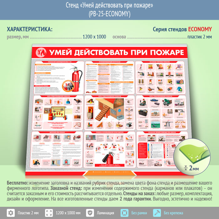 Стенд «Умей действовать при пожаре» (PB-25-ECONOMY) в Улан-Удэ купить