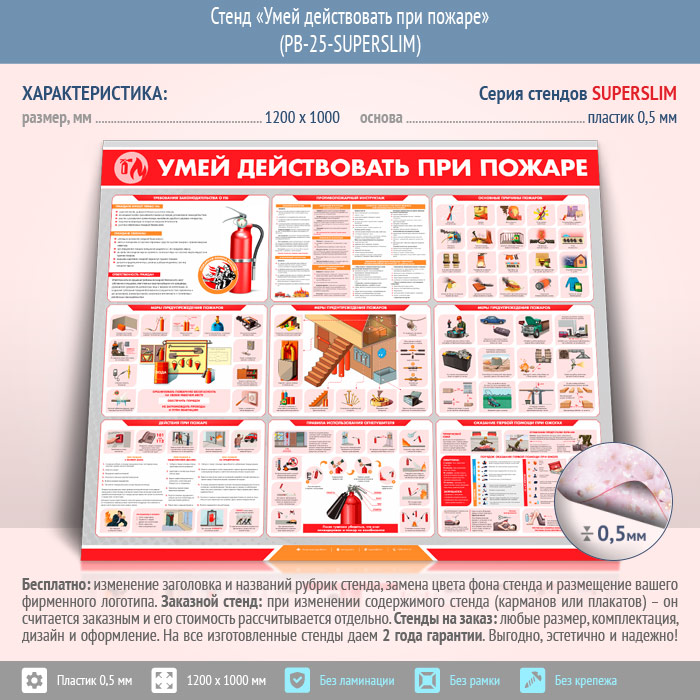 Стенд «Умей действовать при пожаре» (PB-25-SUPERSLIM) в Улан-Удэ купить