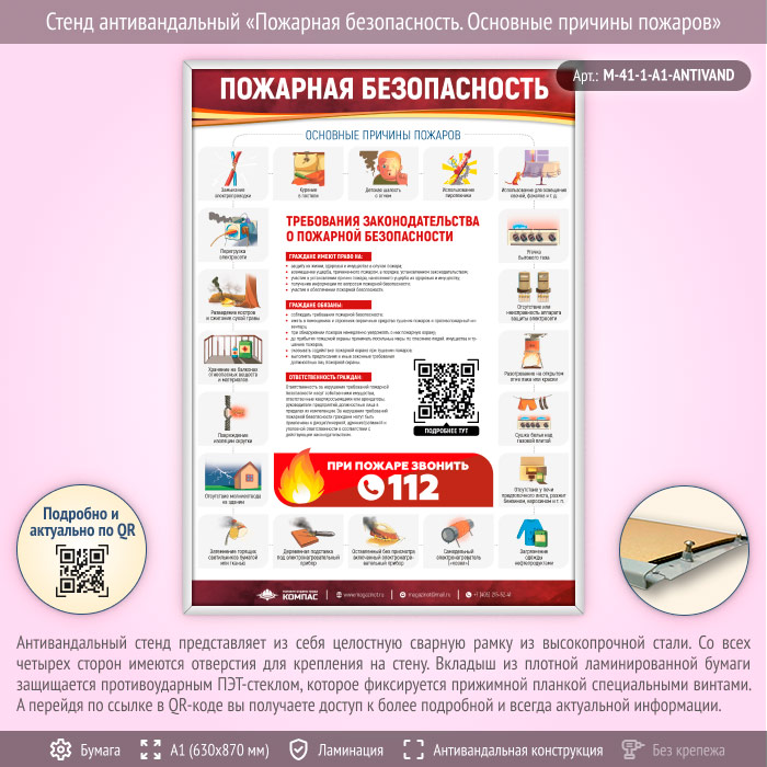 Стенд антивандальный «Пожарная безопасность. Основные причины пожаров» (M-41-1-А1-ANTIVAND) в Улан-Удэ купить
