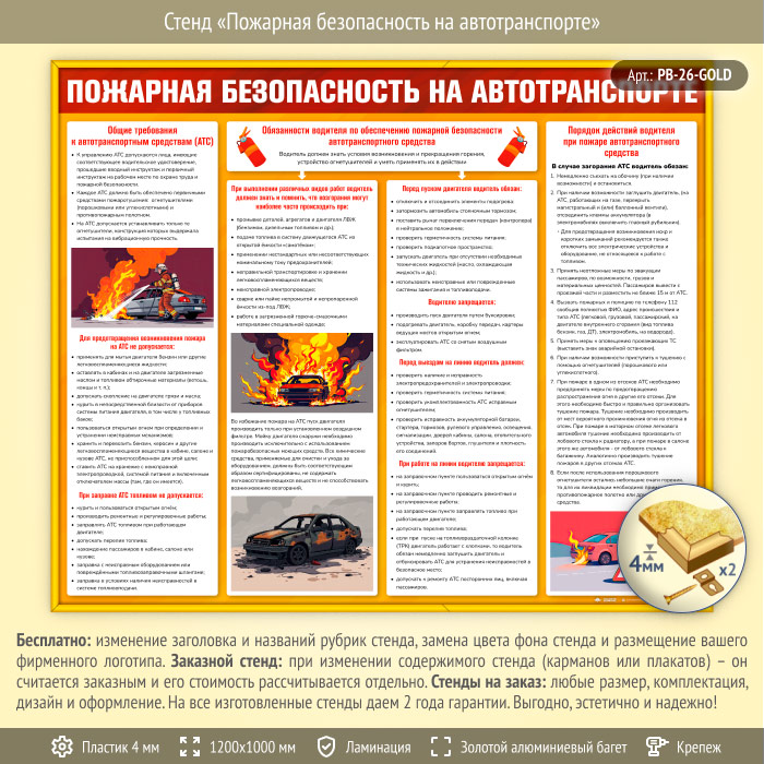 Стенд «Пожарная безопасность на автотранспорте» (PB-26-GOLD) в Улан-Удэ купить