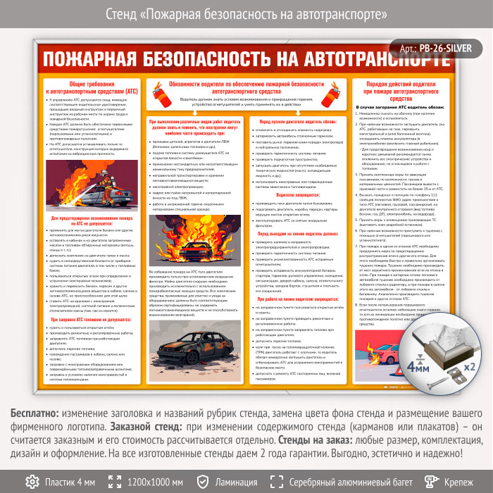 Стенд «Пожарная безопасность на автотранспорте» (PB-26-SILVER) в Улан-Удэ купить