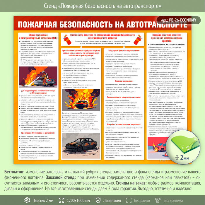 Стенд «Пожарная безопасность на автотранспорте» (PB-26-ECONOMY) в Улан-Удэ купить