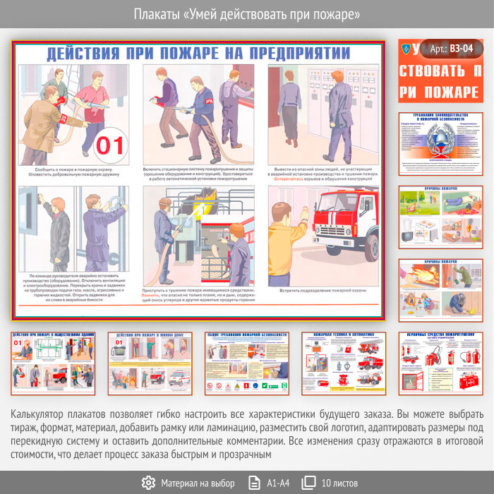 Плакаты «Умей действовать при пожаре» (ВЗ-04, 10 листов) в Улан-Удэ купить