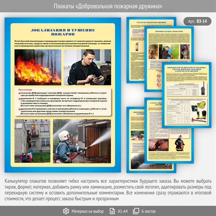 Плакаты «Добровольная пожарная дружина» (ВЗ-14, 6 листов) в Улан-Удэ купить