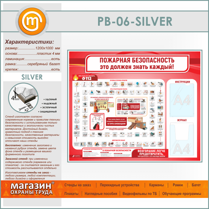 Стенд «Пожарная безопасность. Это должен знать каждый» с плоским и объемным карманами (PB-06-SILVER) в Улан-Удэ купить