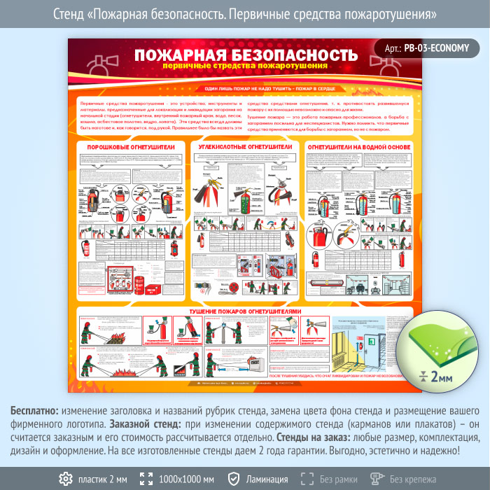 Стенд «Пожарная безопасность. Первичные средства пожаротушения» (PB-03-ECONOMY) в Улан-Удэ купить