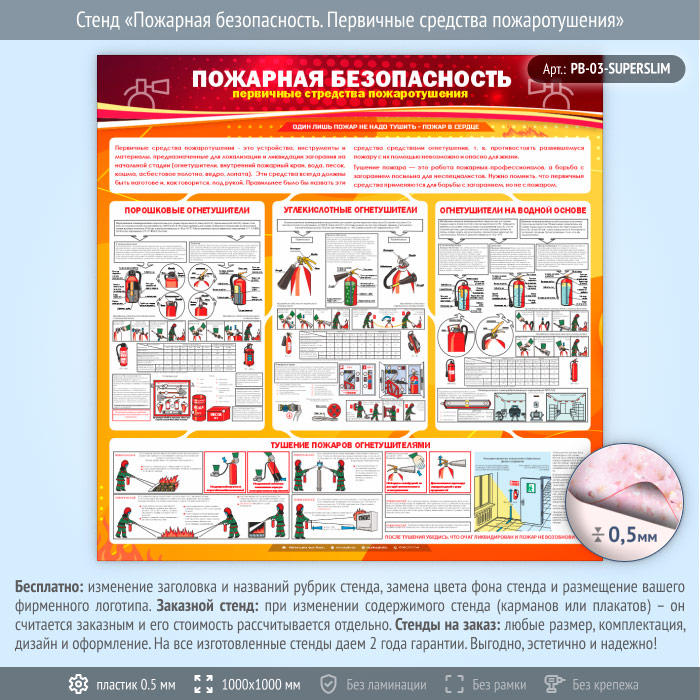 Стенд «Пожарная безопасность. Первичные средства пожаротушения» (PB-03-SUPERSLIM) в Улан-Удэ купить
