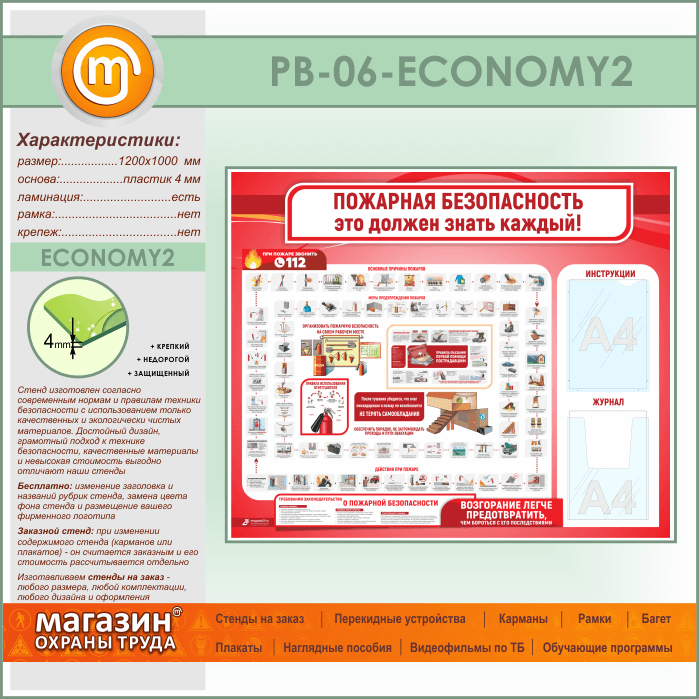 Стенд «Пожарная безопасность. Это должен знать каждый» с плоским и объемным карманами (PB-06-ECONOMY2) в Улан-Удэ купить