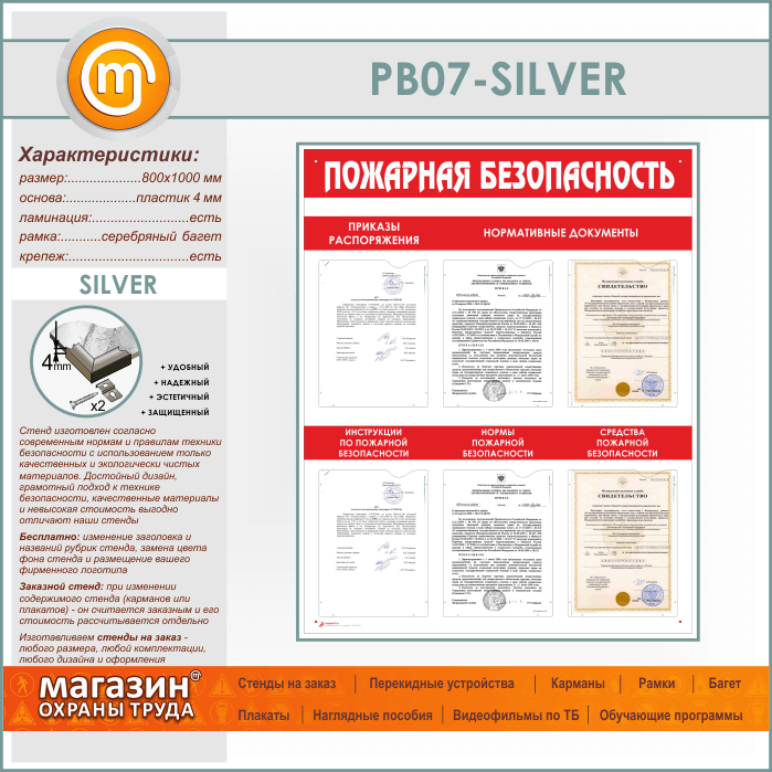 Стенд «Пожарная безопасность» с 6 карманами (PB-07-SILVER) в Улан-Удэ купить