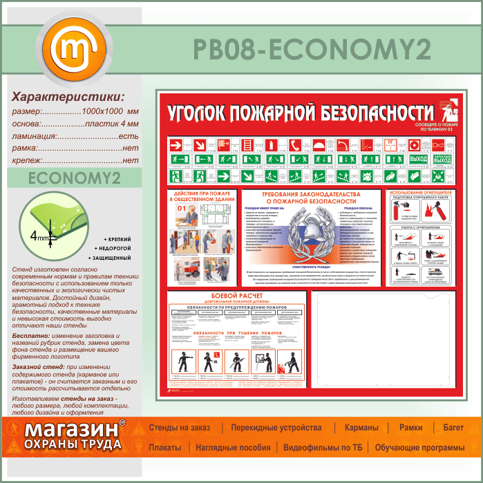 Стенд «Уголок пожарной безопасности» с карманом А3 формата (PB-08-ECONOMY2) в Улан-Удэ купить