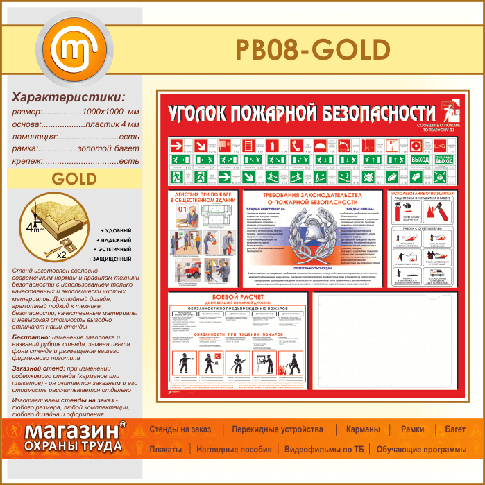 Стенд «Уголок пожарной безопасности» с карманом А3 формата (PB-08-GOLD) в Улан-Удэ купить