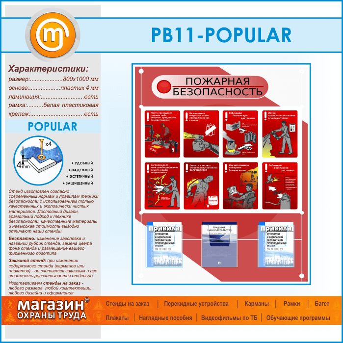 Стенд «Стенд пожарная безопасность в строительстве» с 3 объемными карманами (PB-11-POPULAR) в Улан-Удэ купить