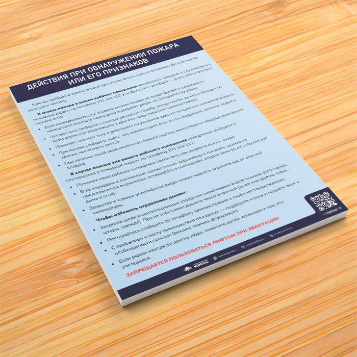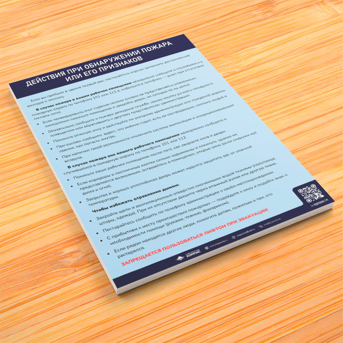 Плакат «Инструкция при обнаружении пожара или его признаков» (М-11, ламинированная бумага, А4, 1 лист) в Улан-Удэ купить