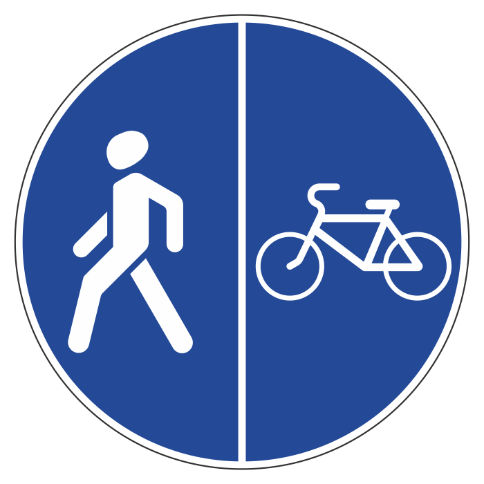 Дорожный знак 4.5.5 «Пешеходная и велосипедная дорожка с разделением движения» (металл 0,8 мм, II типоразмер: диаметр 700 мм, С/О пленка: тип А инженерная) в Улан-Удэ купить