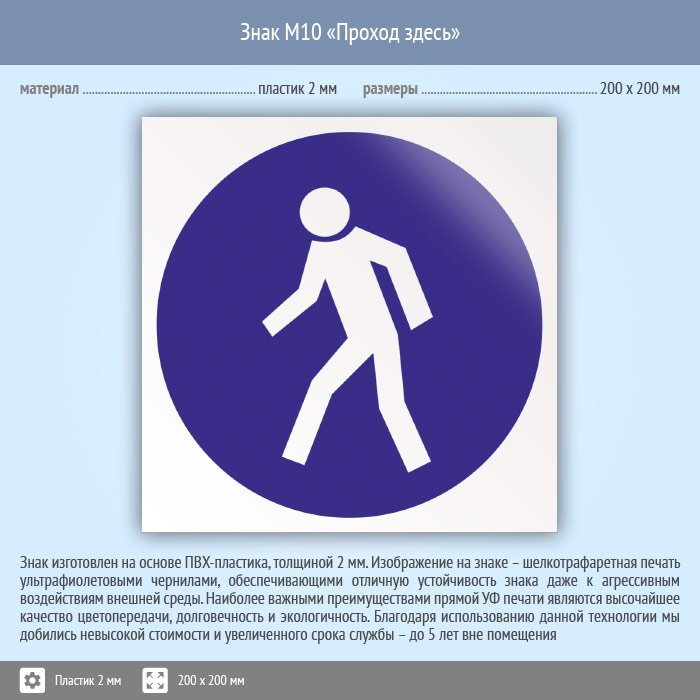 Знак M10 «Проход здесь» (пластик, 200х200 мм) в Улан-Удэ купить
