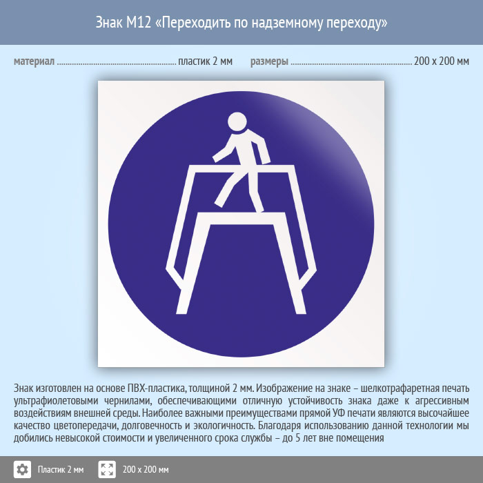 Знак M12 «Переходить по надземному переходу» (пластик, 200х200 мм) в Улан-Удэ купить
