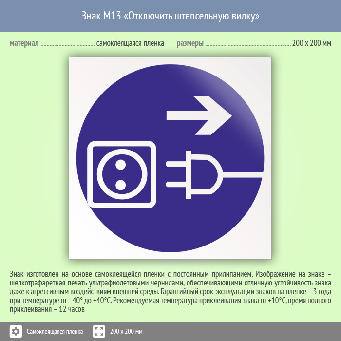 Знак M13 «Отключить штепсельную вилку» (пленка, 200х200 мм) в Улан-Удэ купить