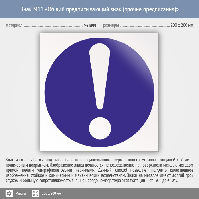 Знак M11 «Общий предписывающий знак (прочие предписания)» (металл, 200х200 мм) в Улан-Удэ купить