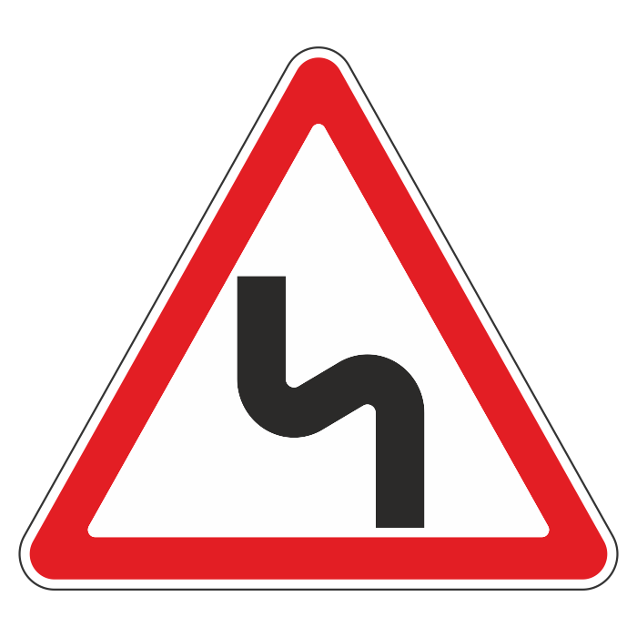 Дорожный знак 1.12.2 «Опасные повороты с первым поворотом налево» (металл 0,8 мм, II типоразмер: сторона 900 мм, С/О пленка: тип А коммерческая) в Улан-Удэ купить