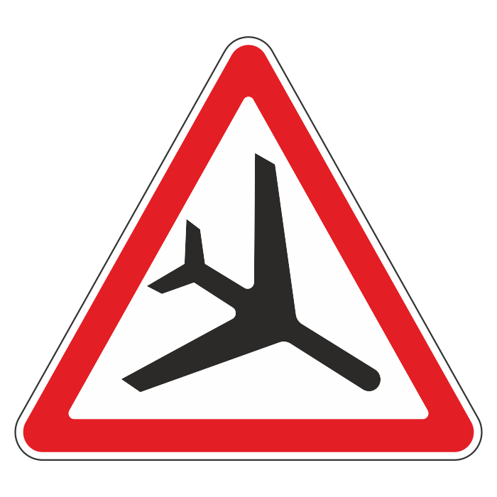 Дорожный знак 1.30 «Низколетящие самолеты» (металл 0,8 мм, II типоразмер: сторона 900 мм, С/О пленка: тип А коммерческая) в Улан-Удэ купить