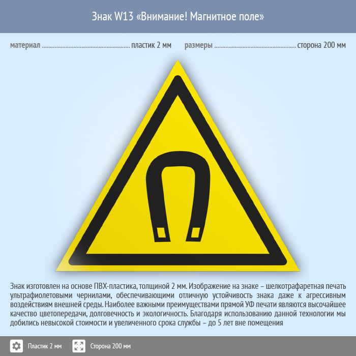 Знак W13 «Внимание! магнитное поле» (пластик, сторона 200 мм) в Улан-Удэ купить