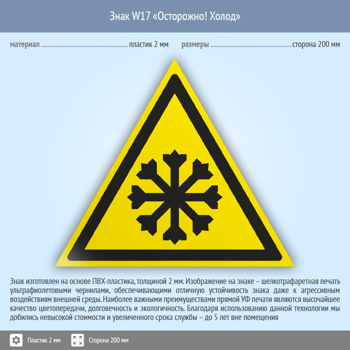 Знак W17 «Осторожно! холод» (пластик, сторона 200 мм) в Улан-Удэ купить