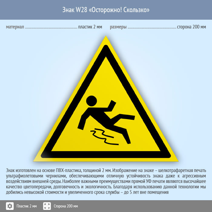 Знак W28 «Осторожно! скользко» (пластик, сторона 200 мм) в Улан-Удэ купить