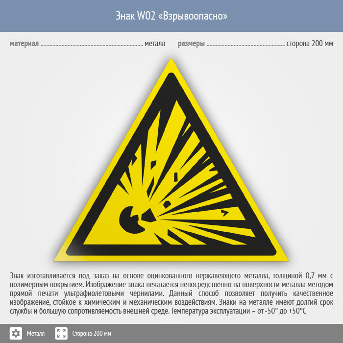 Знак W02 «Взрывоопасно» (металл, сторона 200 мм) в Улан-Удэ купить