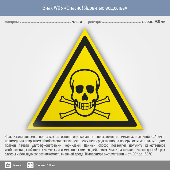 Знак W03 «Опасно! ядовитые вещества» (металл, сторона 200 мм) в Улан-Удэ купить