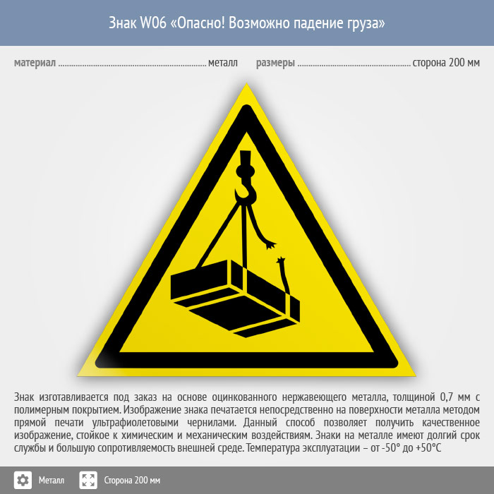 Знак W06 «Опасно! возможно падение груза» (металл, сторона 200 мм) в Улан-Удэ купить