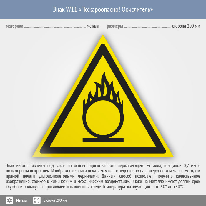 Знак W11 «Пожароопасно! окислитель» (металл, сторона 200 мм) в Улан-Удэ купить