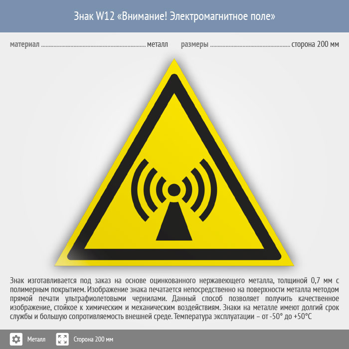 Знак W12 «Внимание! электромагнитное поле» (металл, сторона 200 мм) в Улан-Удэ купить