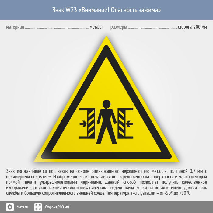 Знак W23 «Внимание! опасность зажима» (металл, сторона 200 мм) в Улан-Удэ купить