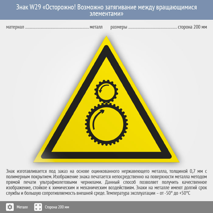 Знак W29 «Осторожно! возможно затягивание между вращающимися элементами» (металл, сторона 200 мм) в Улан-Удэ купить