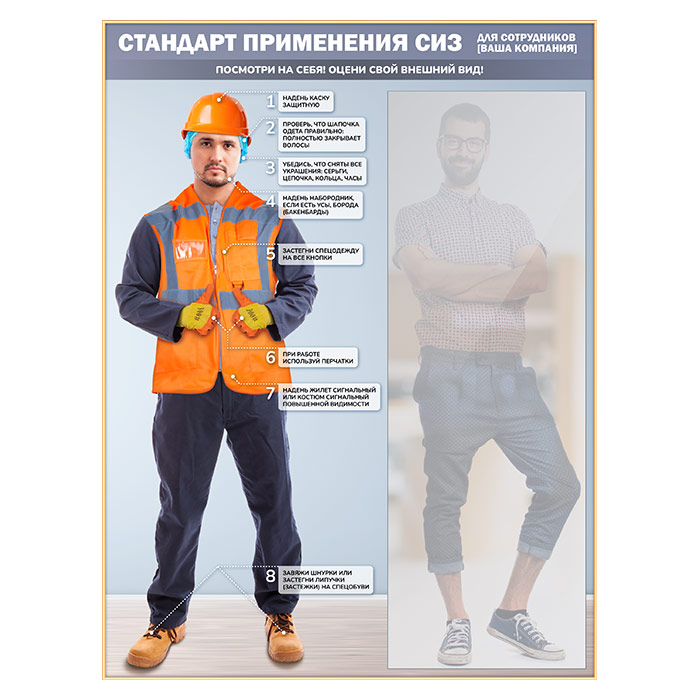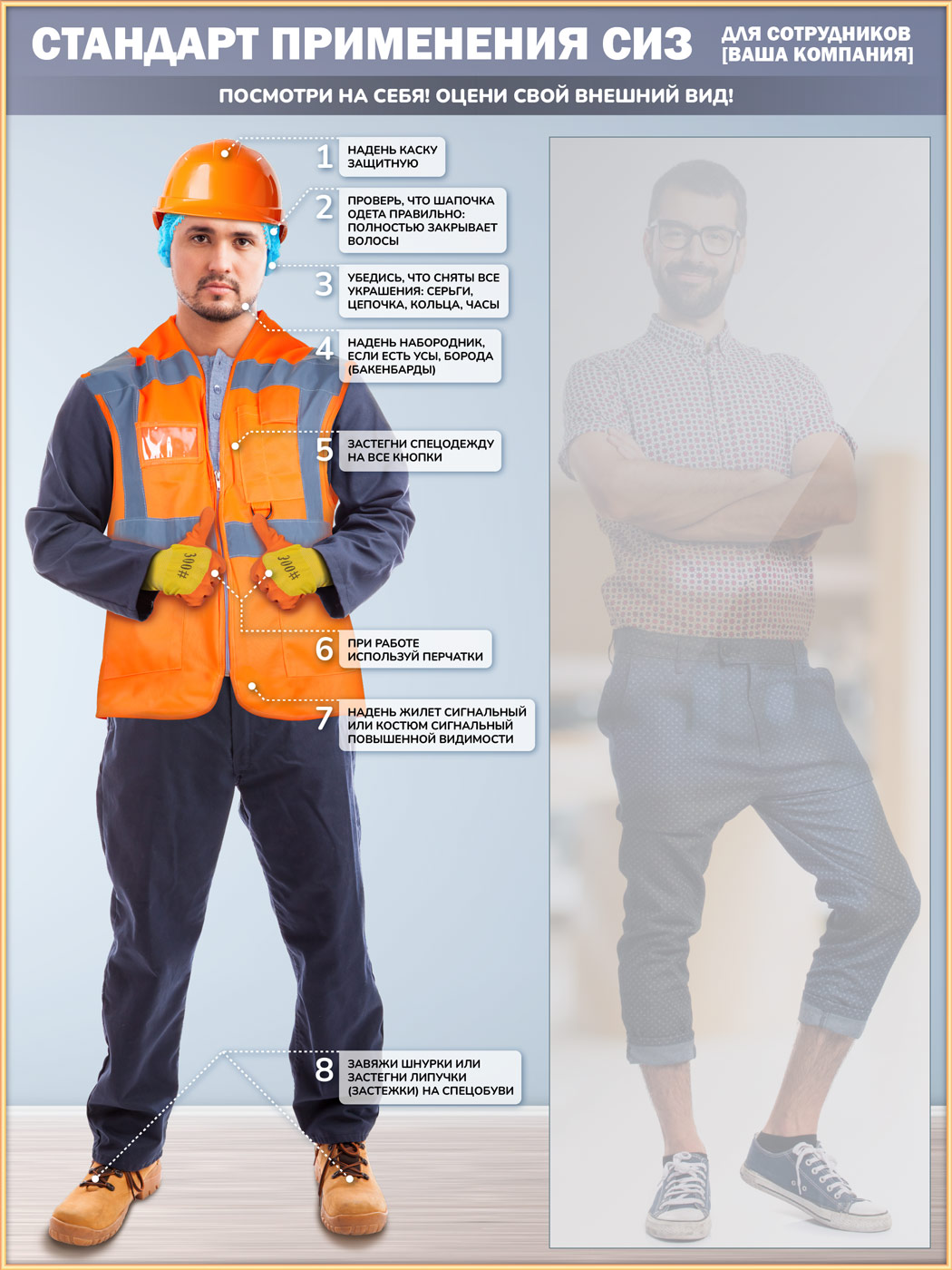 Стенд для демонстрации применения СИЗ с зеркалом, 1500х2000 мм в золотом багете (СПС-03-З) в Улан-Удэ купить