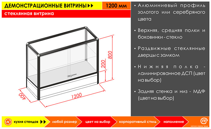 Стеклянная витрина, 1200 мм в Улан-Удэ купить