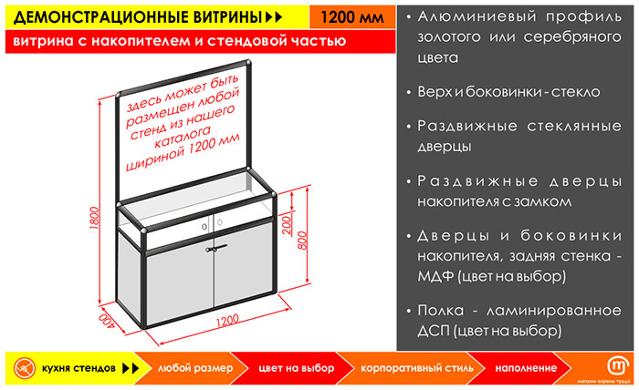 Витрина с накопителем и стендовой частью, 1200 мм в Улан-Удэ купить
