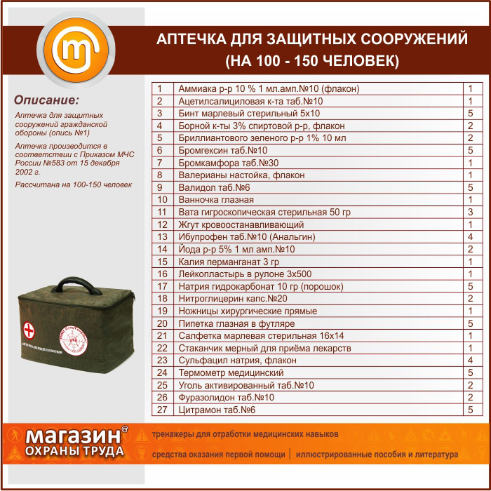 Аптечка для Защитных Сооружений (на 100 - 150 человек) - сумка | Аптечка для Защитных Сооружений (на 100 - 150 человек) - сумка |
