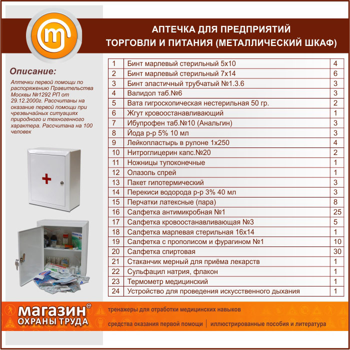 Аптечка для предприятий торговли и питания - (на 100 человек) - металлический шкаф в Улан-Удэ купить
