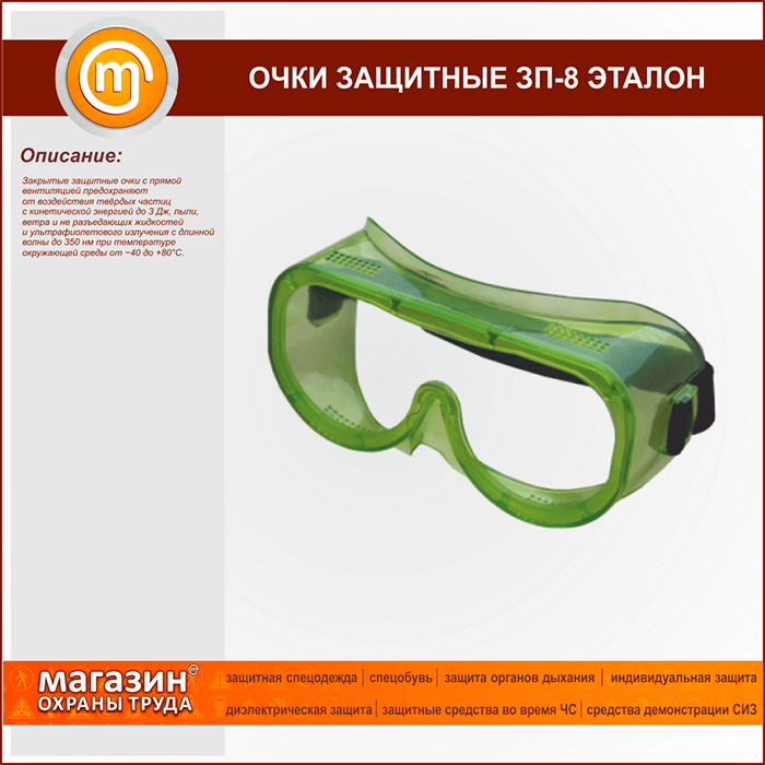 Очки защитные закрытые с прямой вентиляцией ЗП8 "ЭТАЛОН" | Очки защитные закрытые с прямой вентиляцией ЗП8 "ЭТАЛОН" |