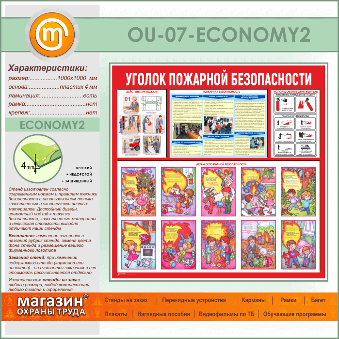 Стенд «Уголок пожарной безопасности» (OU-07-ECONOMY2) в Улан-Удэ купить