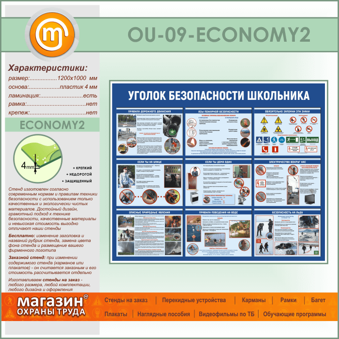 Стенд «Уголок безопасности школьника» (OU-09-ECONOMY2) в Улан-Удэ купить