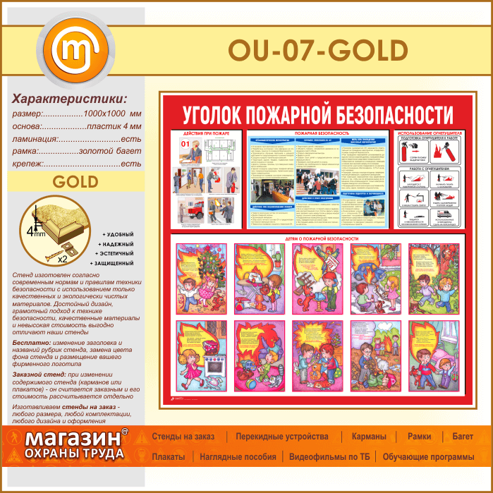 Стенд «Уголок пожарной безопасности» (OU-07-GOLD) в Улан-Удэ купить