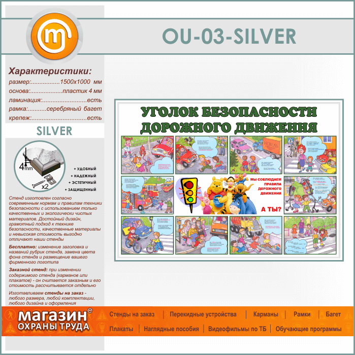 Стенд «Уголок безопасности дорожного движения» (OU-03-SILVER) в Улан-Удэ купить
