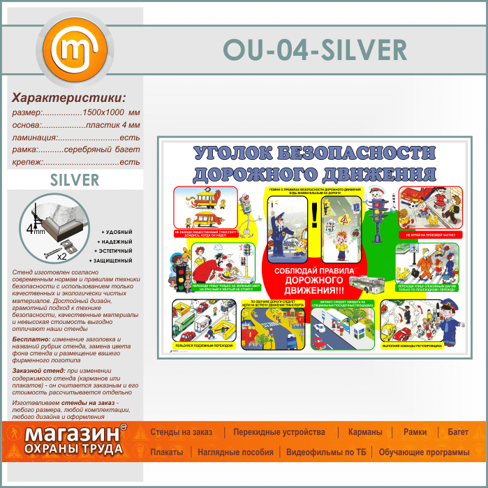 Стенд «Уголок безопасности дорожного движения» (OU-04-SILVER) в Улан-Удэ купить