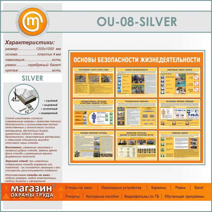 Стенд «Основы безопасности жизнедеятельности» (OU-08-SILVER) в Улан-Удэ купить